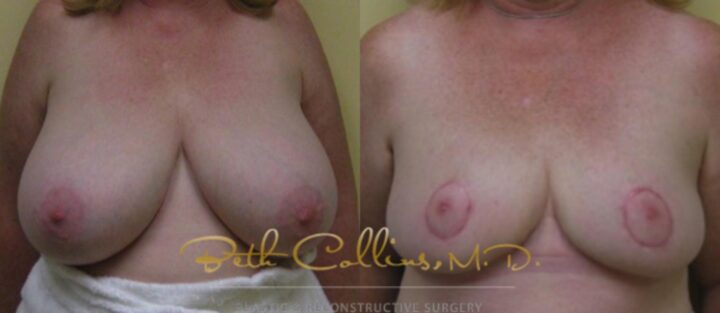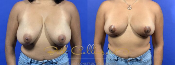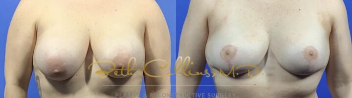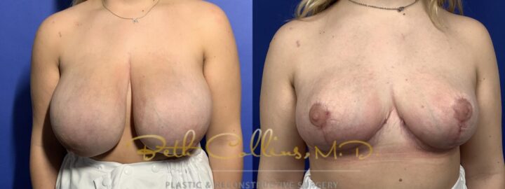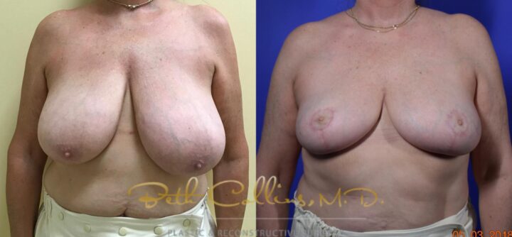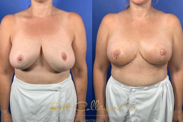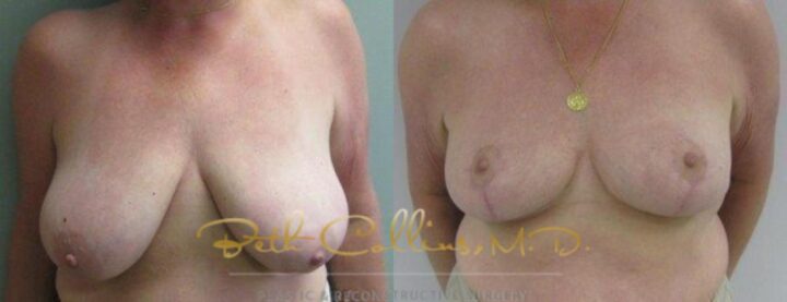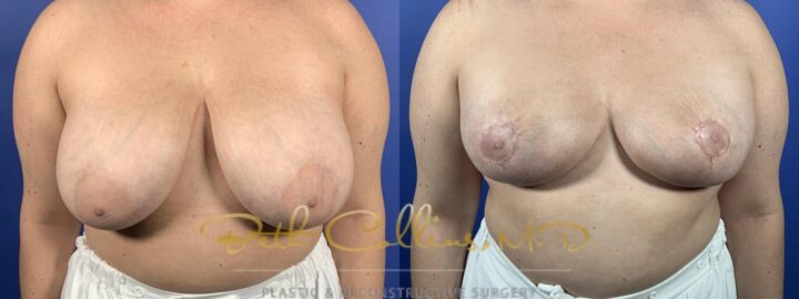 Back, neck and shoulder pain are a common complaint that lead a person to seek breast reduction surgery. This patient presented with these complaints and Dr. Collins was able to help her resolve these issues while giving her a lovely cosmetic result. Over 500 grams of tissue were removed from...