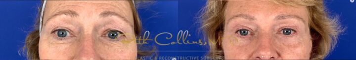 This beautiful patient was troubled by the heaviness of her upper eyelids and brow and some early jowls. She came to Dr. Collins for options to get the most natural result and it was without question that she would benefit most from a lower face and neck lift, and a...