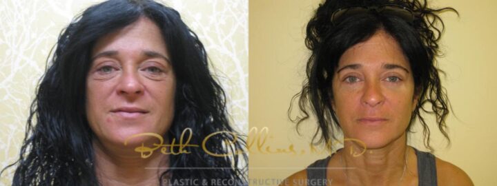 This 40-year-old woman was unhappy with the signs of aging she saw on her face. She had experienced sagging skin, and was showing signs of developing jowls. I performed a deep plane facelift to lift and reposition her skin, giving her a more youthful appearance.