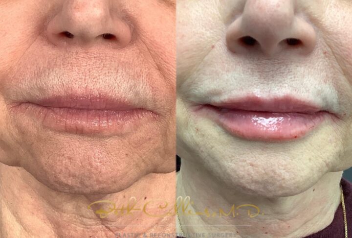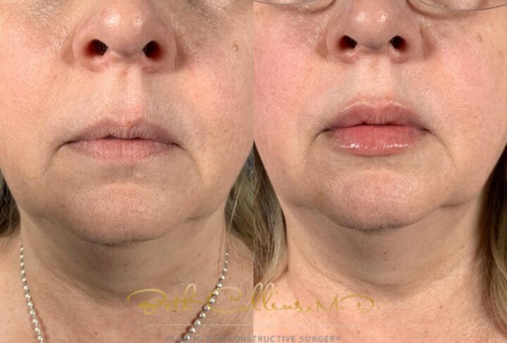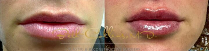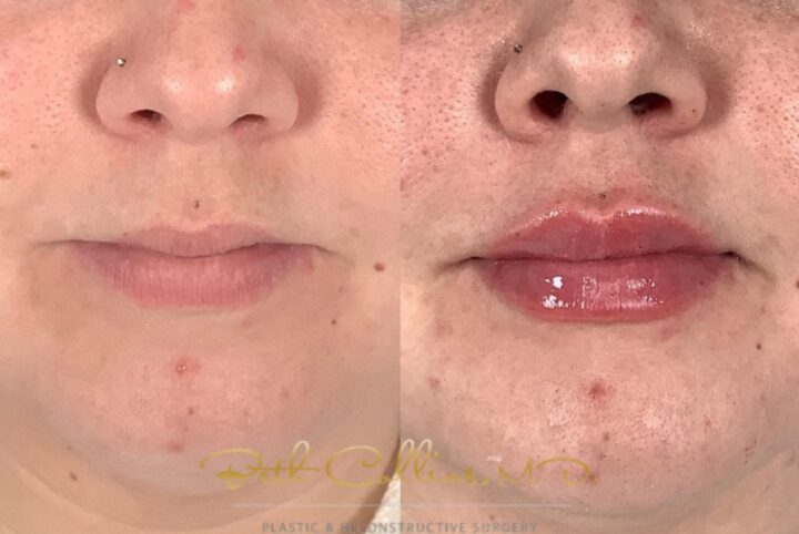 This woman wanted to enhance the size and shape of her upper and lower lips with lip filler. Leah was able to achieve a subtle but dramatic result with lip filler injections.