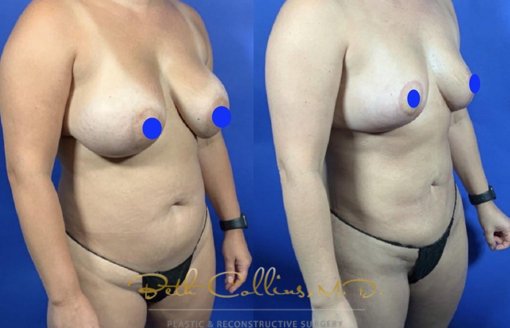 Dr. Collins performed a mommy makeover, combining a breast reduction and lift with a tummy tuck, giving her the feminine curves she wanted.