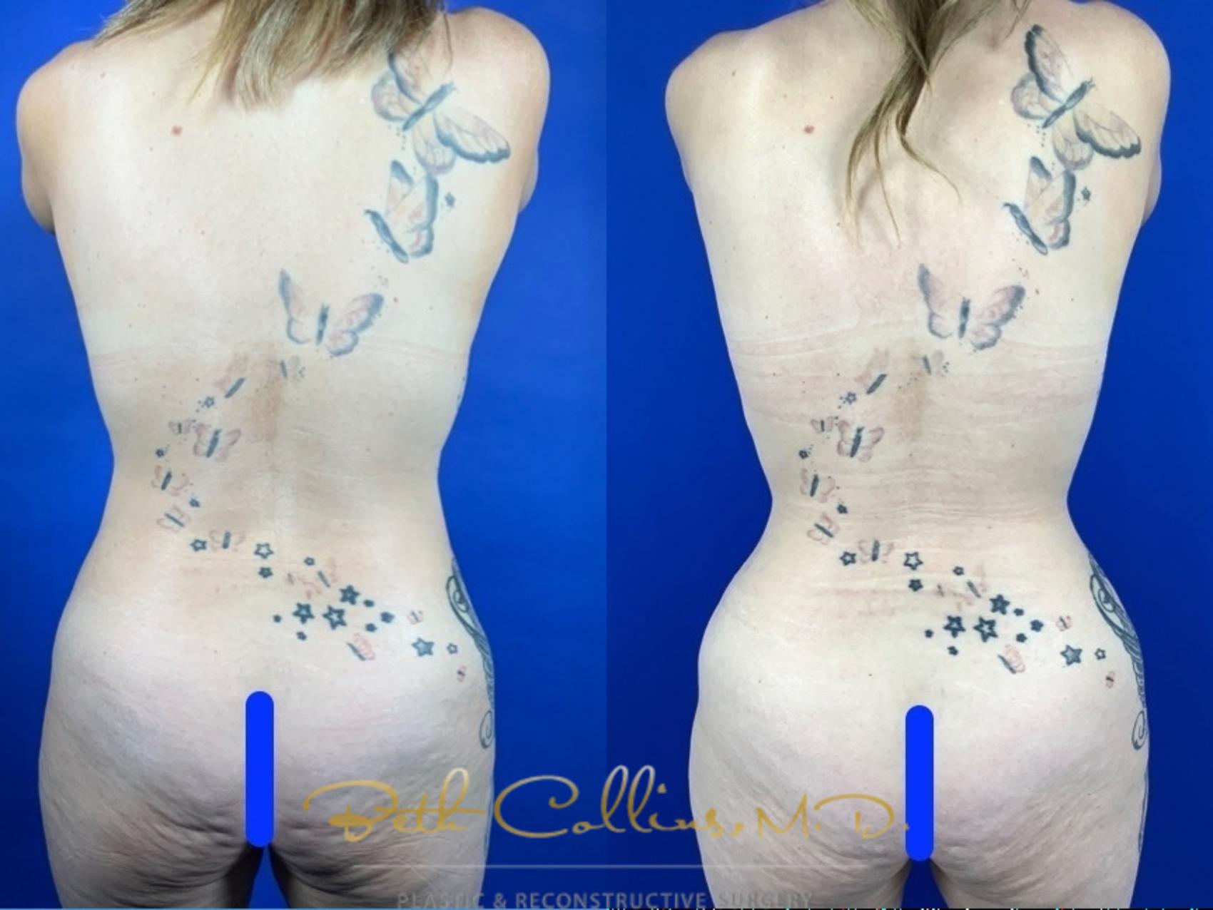 This patient is just one month out from her surgery. She had a tummy tuck with flank liposuction leaving her already nice curves so much better!!