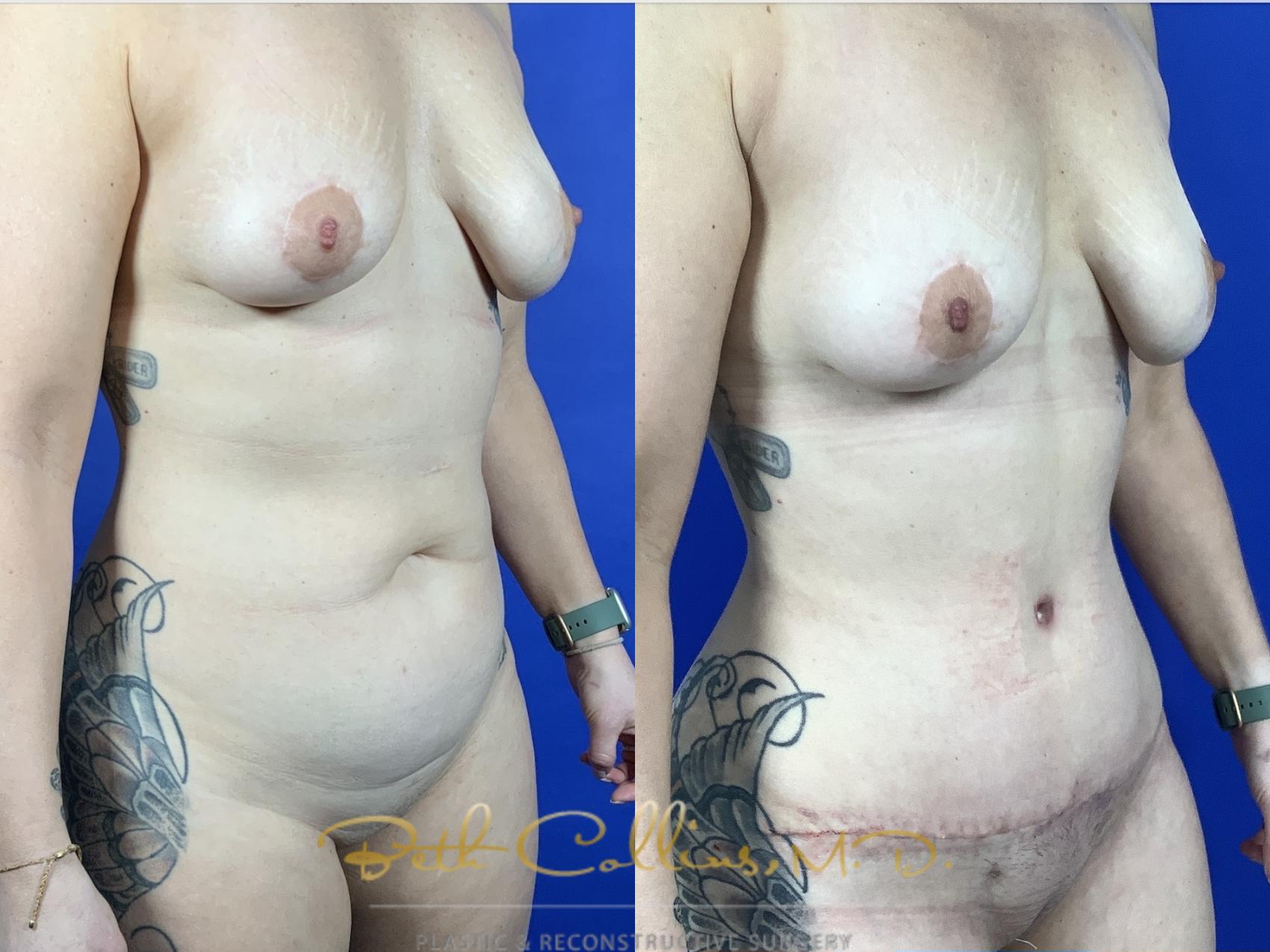 This patient is just one month out from her surgery. She had a tummy tuck with flank liposuction leaving her already nice curves so much better!!