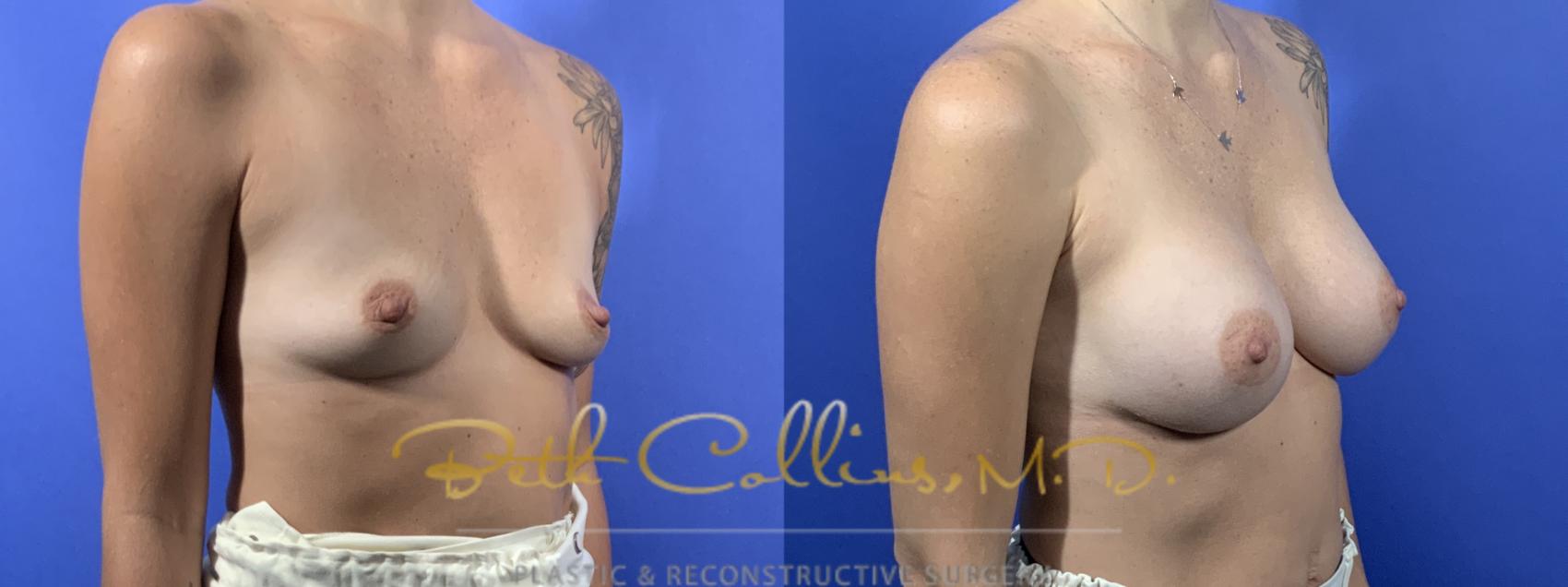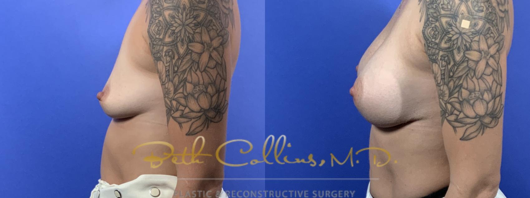 When there is more native breast tissue to hide the implant in the pre-op, a subglandular, or subfascial position of the implant is acceptable. This position of implant avoids violation of the position and function of the pectorals muscle. Many patients find this to be more comfortable. It is particularly good for women who work out a lot and do upper body and chest exercises.