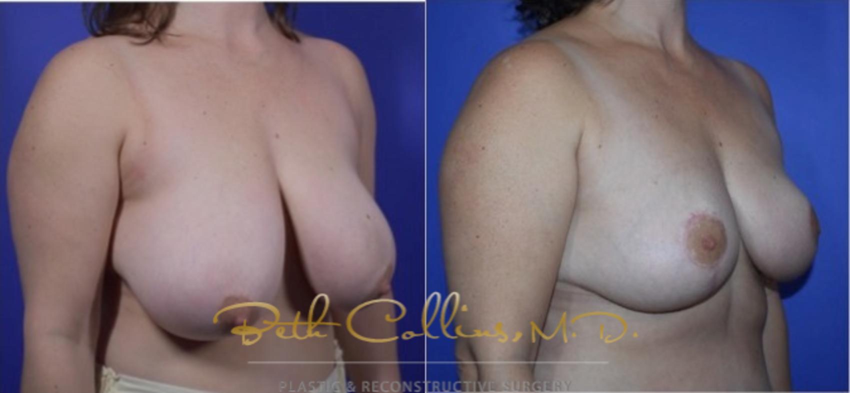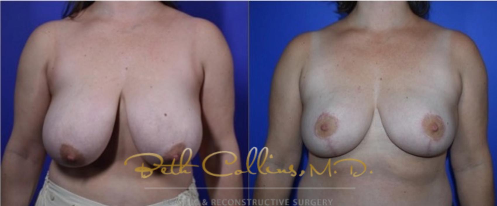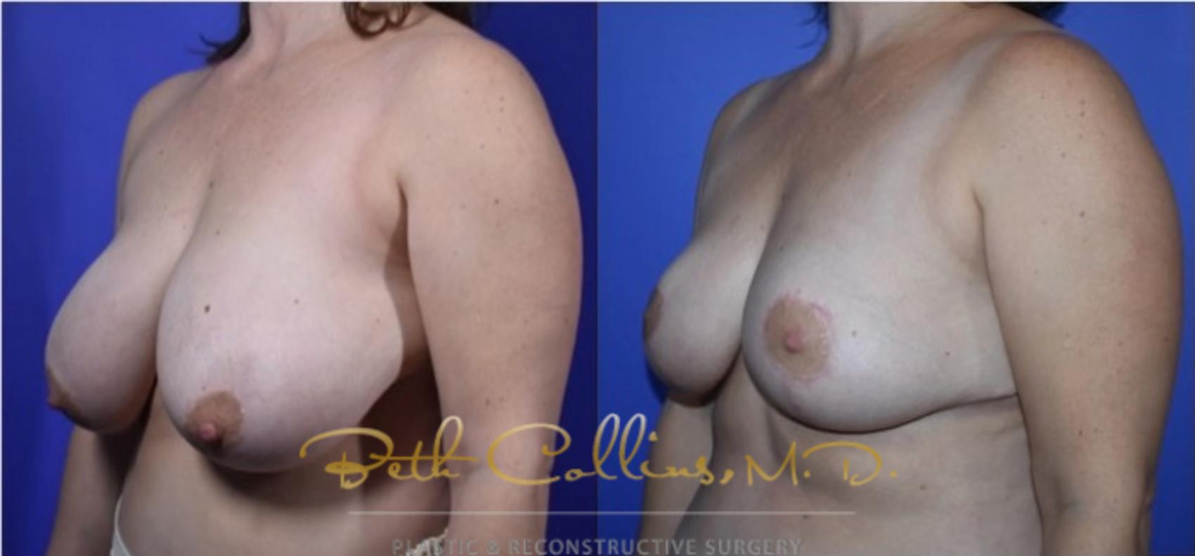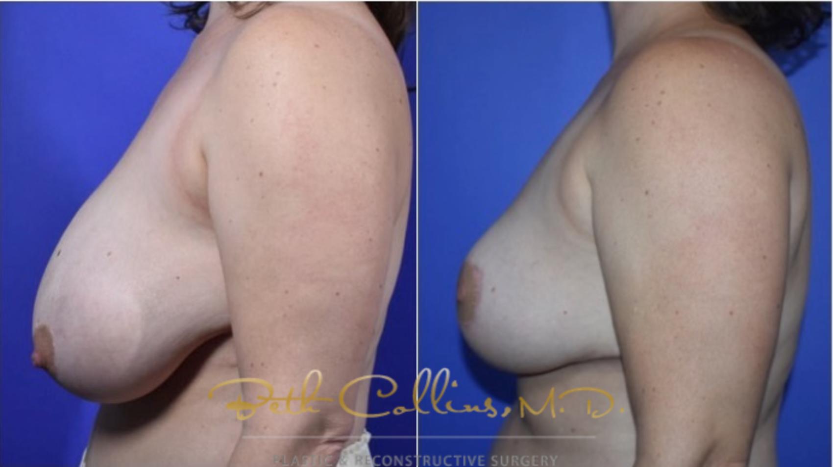 This woman came to Dr. Collins’ practice to reduce the size and enhance the appearance of her breasts. Dr. Collins performed a breast lift to improve the shape and size of her breasts.