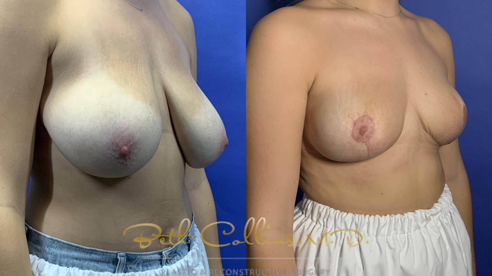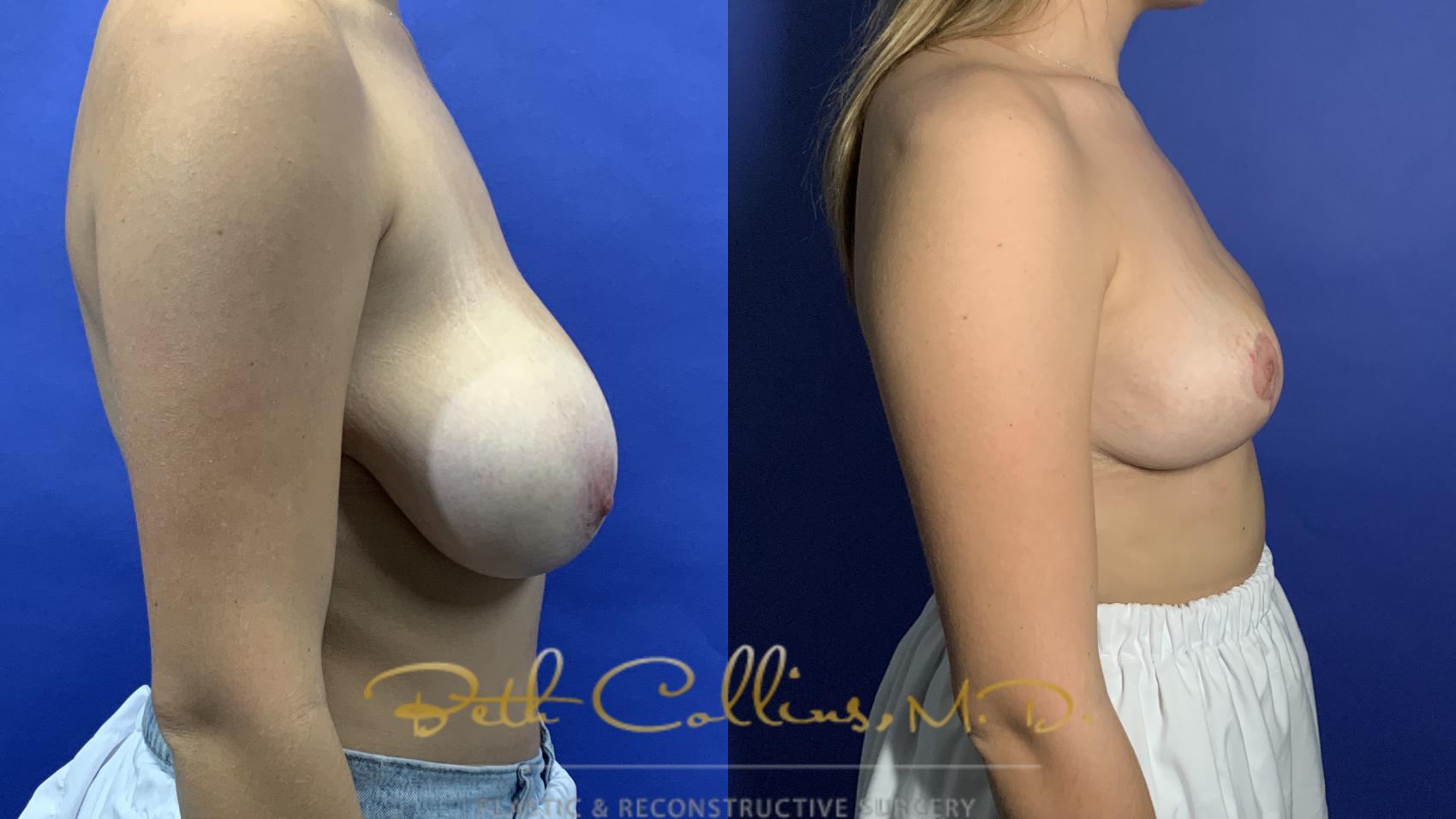 Bilateral breast reduction is a similar operation to a breast lift. Both procedures lift and shape the breast, placing the nipple in a more aesthetically pleasing location. One involves removal of more breast tissue and fat, the other involves rearranging and shaping the breast while leaving most of the tissue to maintain the size of the breast. People often ask if they will have a lift along with their reduction and the answer is : YES!! Always!! Not everyone will have a reduction along with their lift….just depends upon the person and what they need and what they want.