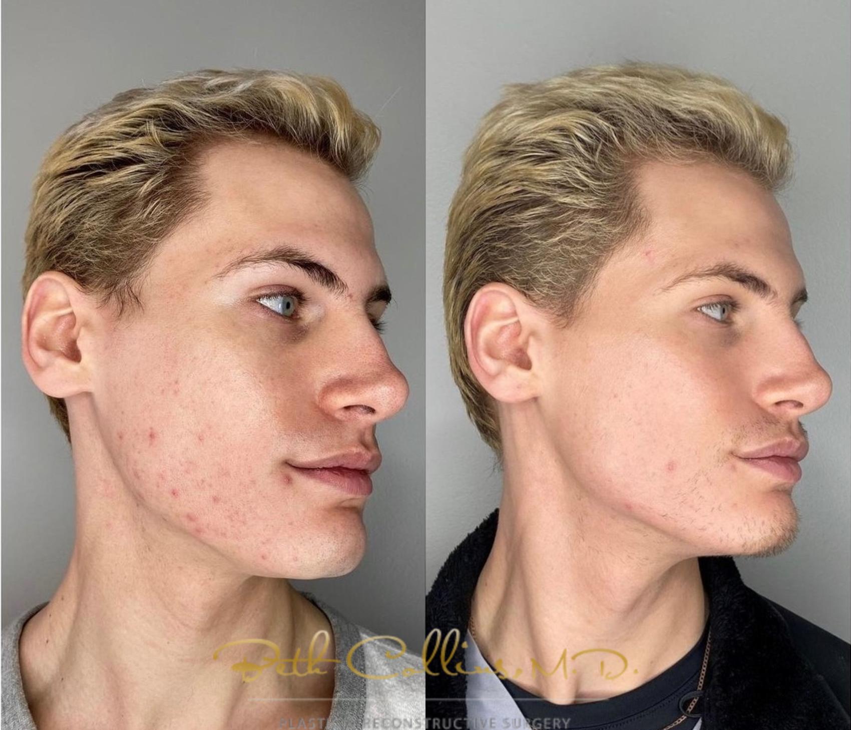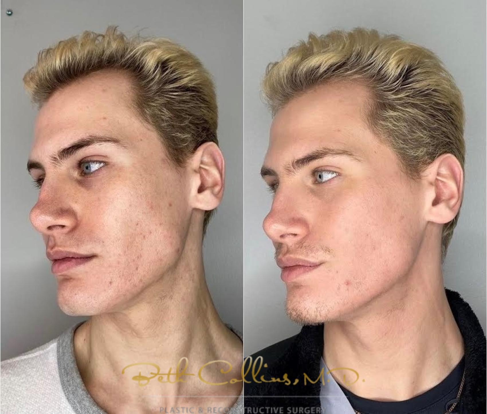 This young man wanted help treating his active acne on his cheeks and jawline. Using laser acne treatments, his skin is now clear and smooth.