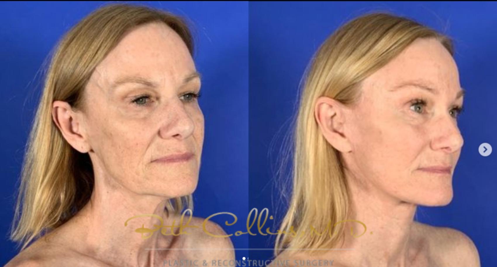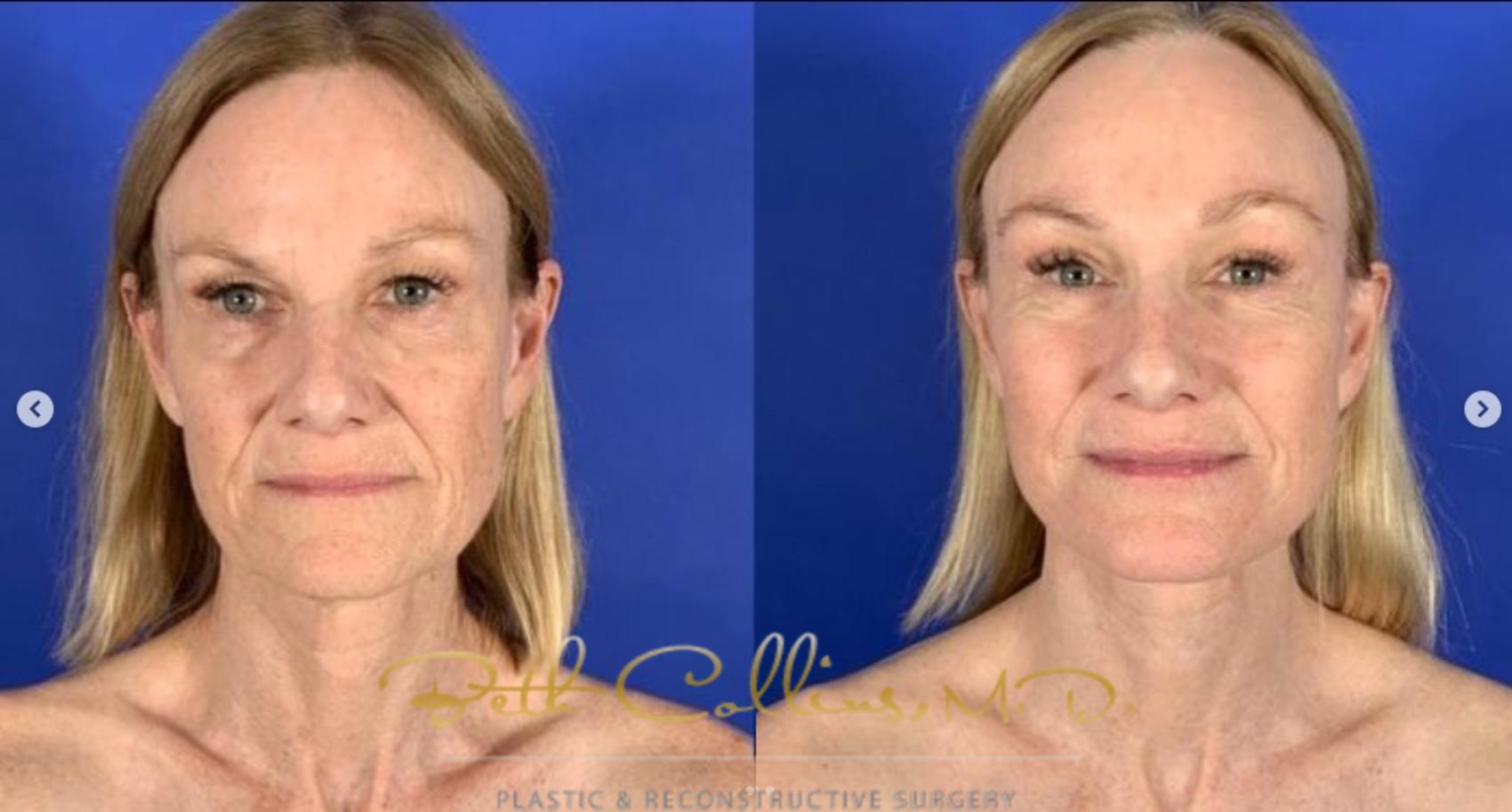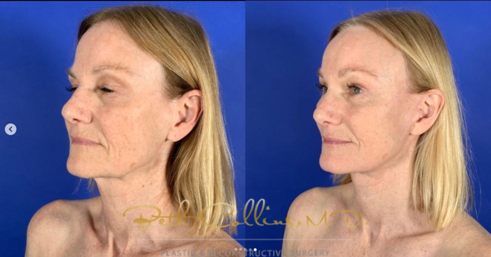Six months following her deep plane facelift, expertly performed by Beth Collins M.D., has indeed whispered of the masterful hand of the surgeon, and the patient’s refined appearances are a testament to this. As seen in the before and after photos, the defined contours of her face following the deep plane facelift, combined with the rejuvenated upper eyelid and lifted brow line from the Blepharoplasty and Brow Lift procedures respectively, subtly enhance her features without drastically altering her individual appeal.