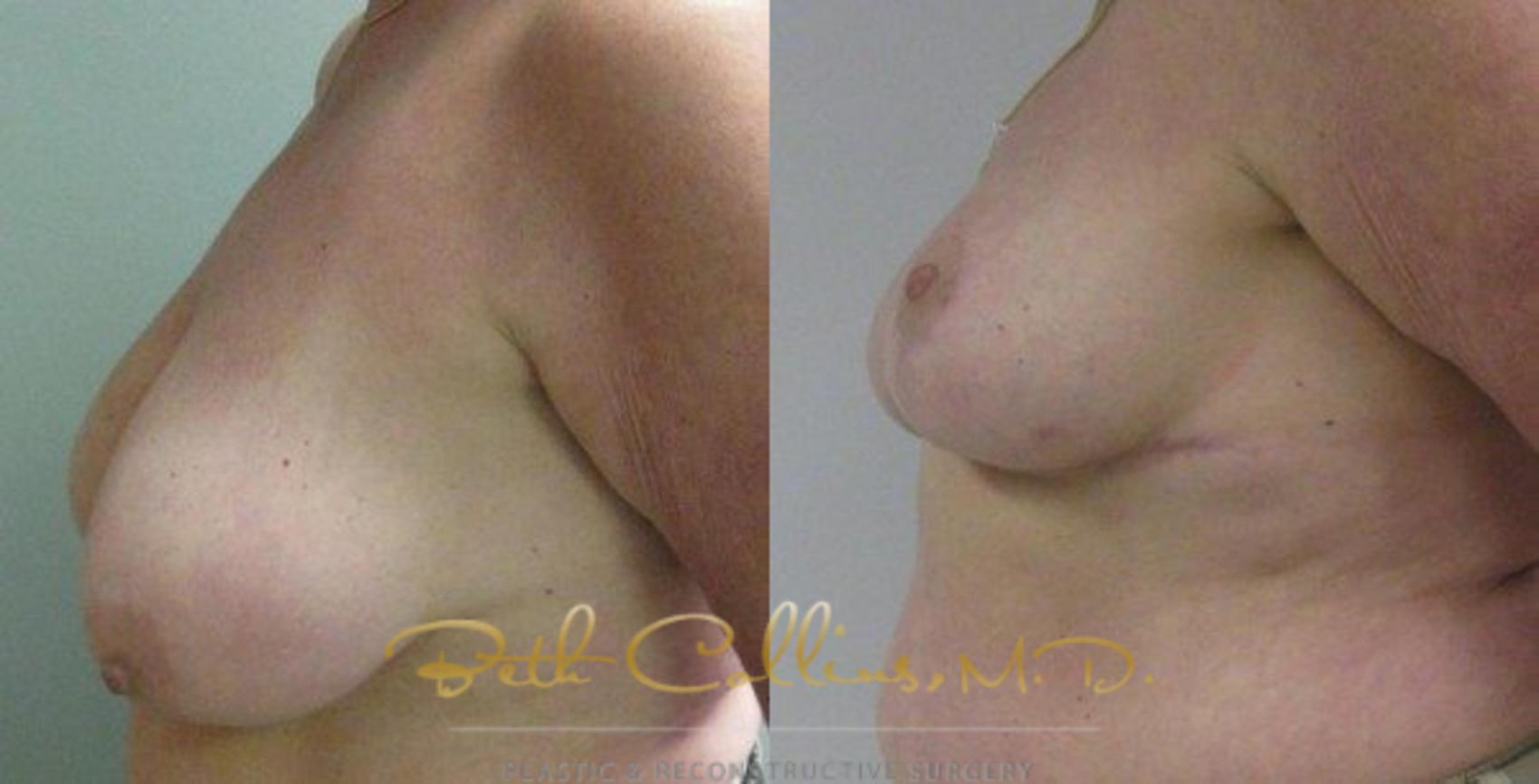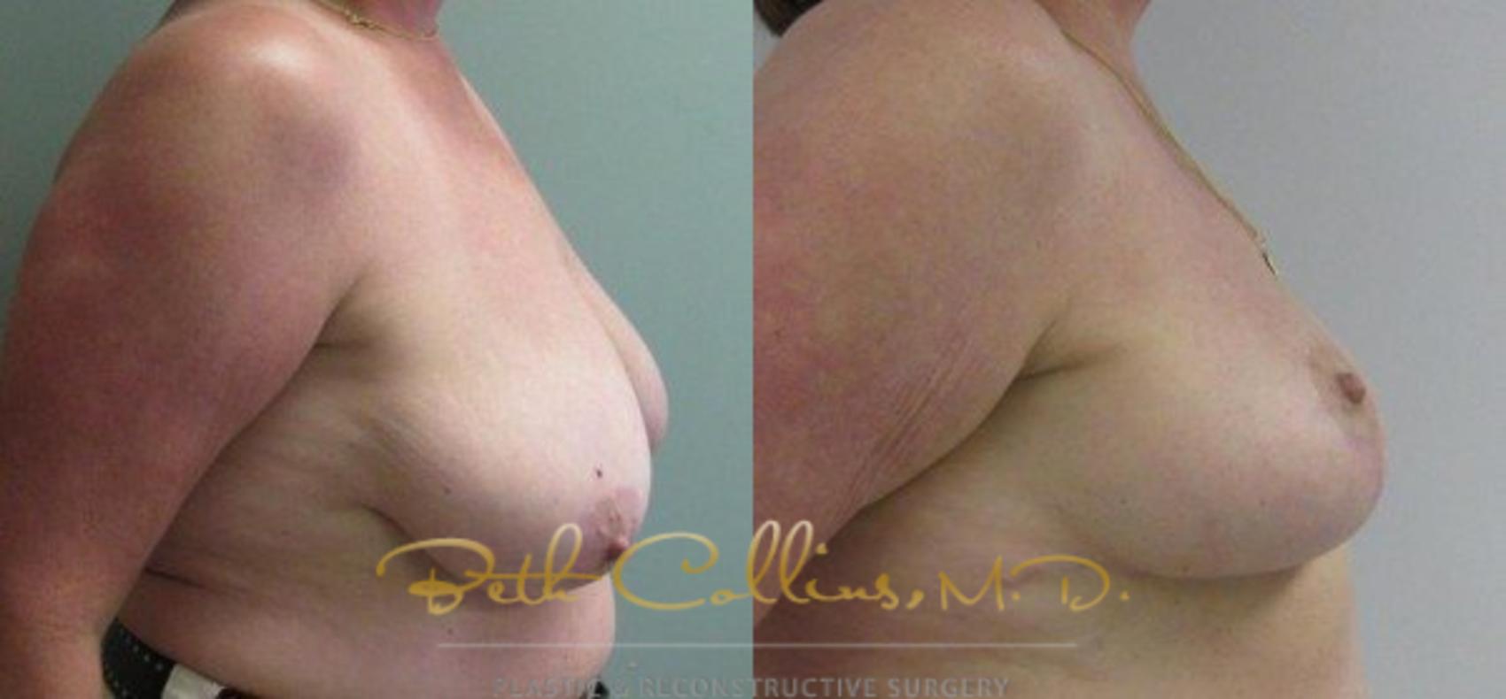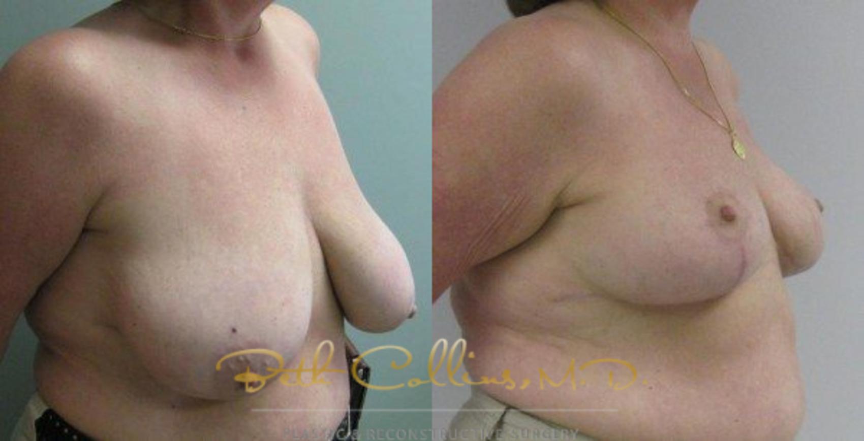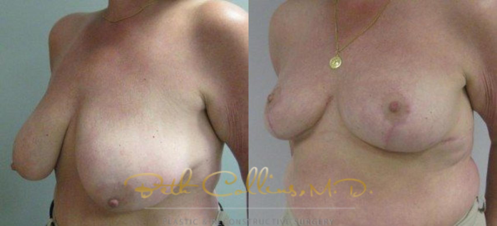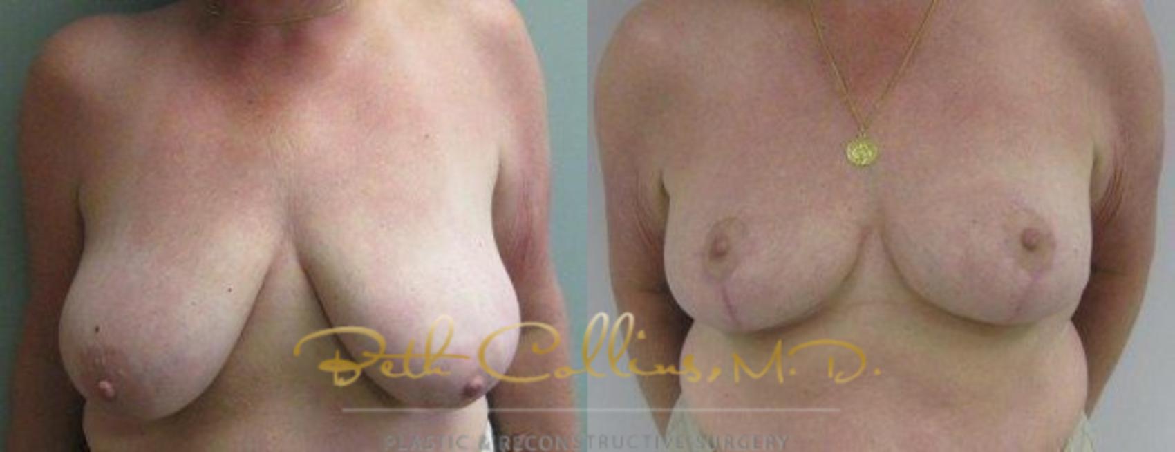 Back, neck and shoulder pain are a common complaint that lead a person to seek breast reduction surgery. This patient presented with these complaints and Dr. Collins was able to help her resolve these issues while giving her a lovely cosmetic result. Over 500 grams of tissue were removed from each breast and in these three month post operative pictures, the swelling has almost completely resolved and the scars are already on their way to becoming invisible.
