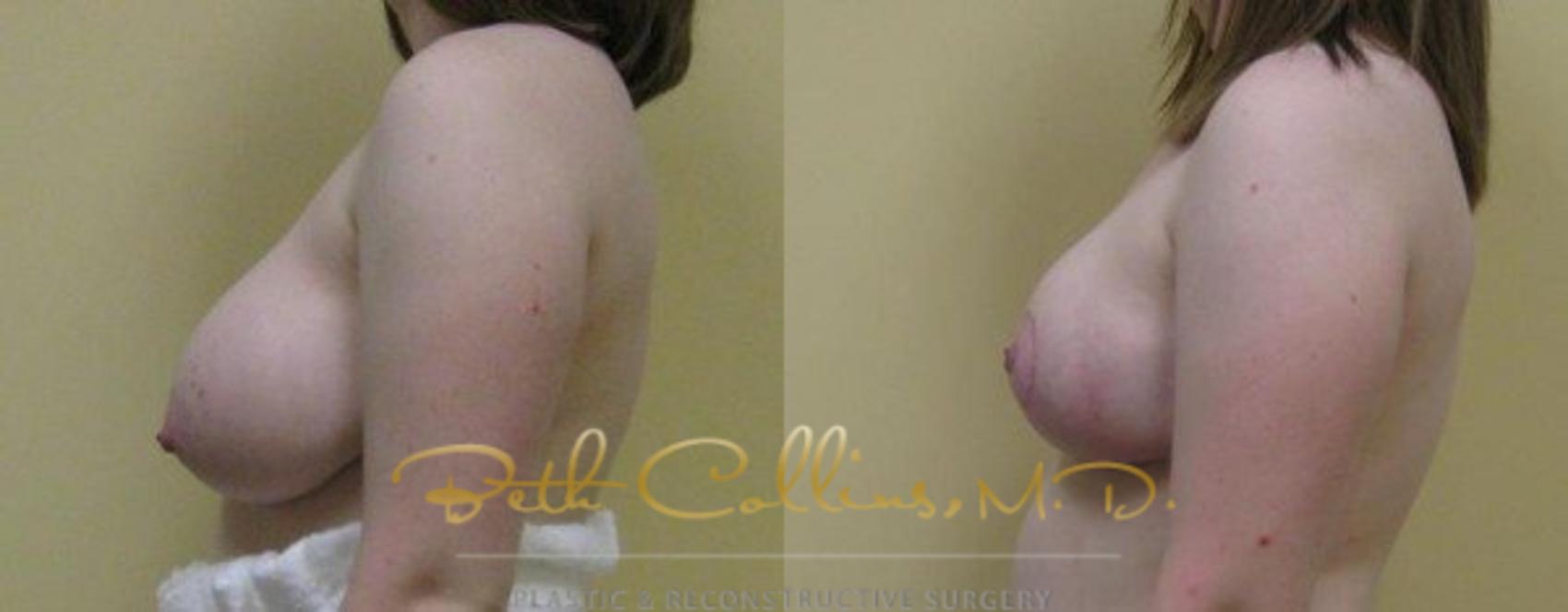 I am always so glad when younger patients who need breast reduction find their way in to have it done before they live their whole lives with large unruly breasts. This young lady who was 18 years old was already bothered by back, neck and shoulder pain. Her breasts were dense and heavy and uncomfortable. She came in for breast reduction and after she had the surgery, it motivated her to lose 20 pounds. She feels that this reset her life and made her go in a whole new direction with healthy eating habits and exercise. We did a bilateral breast reduction with removal of over 500 grams of breast tissue from each side.