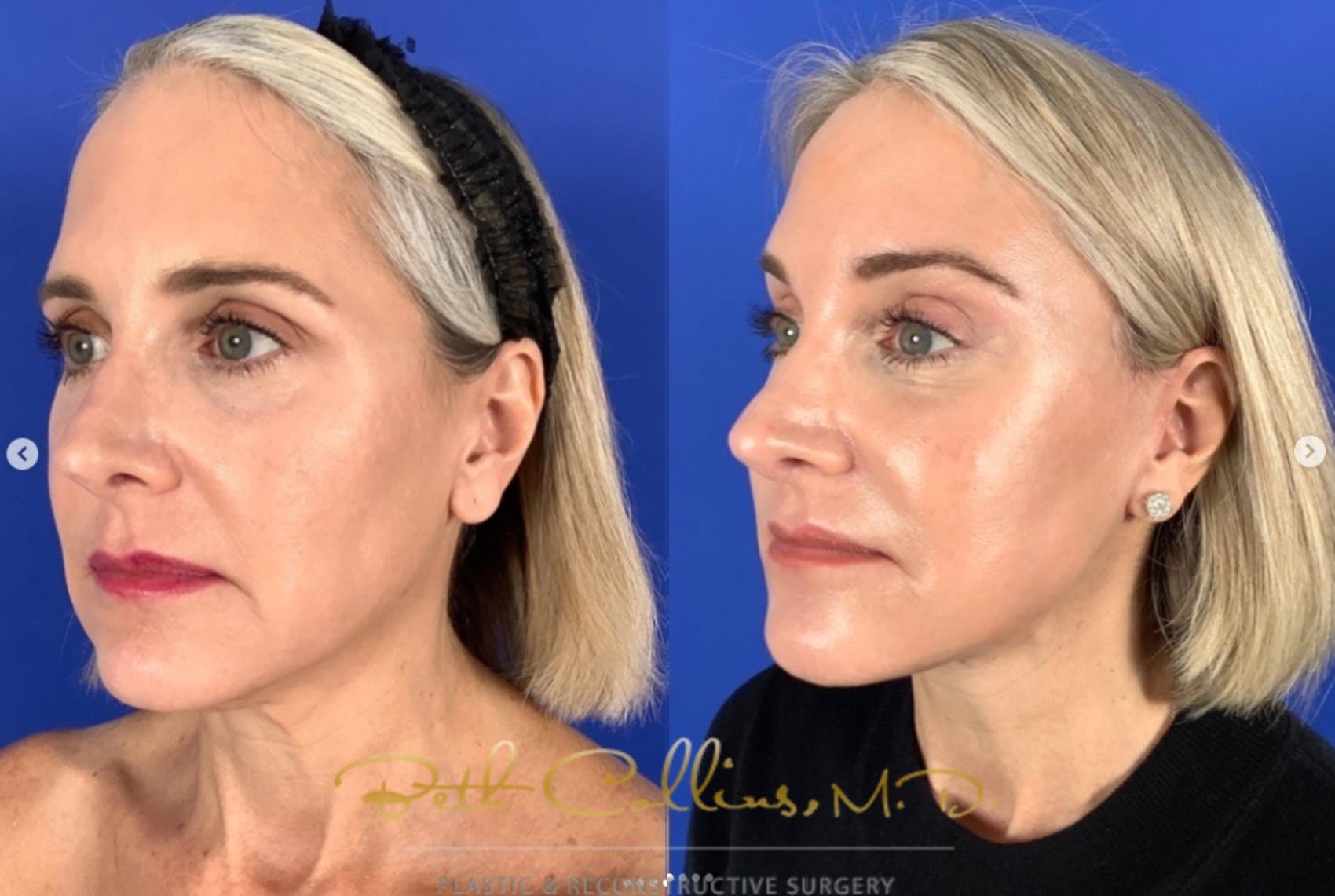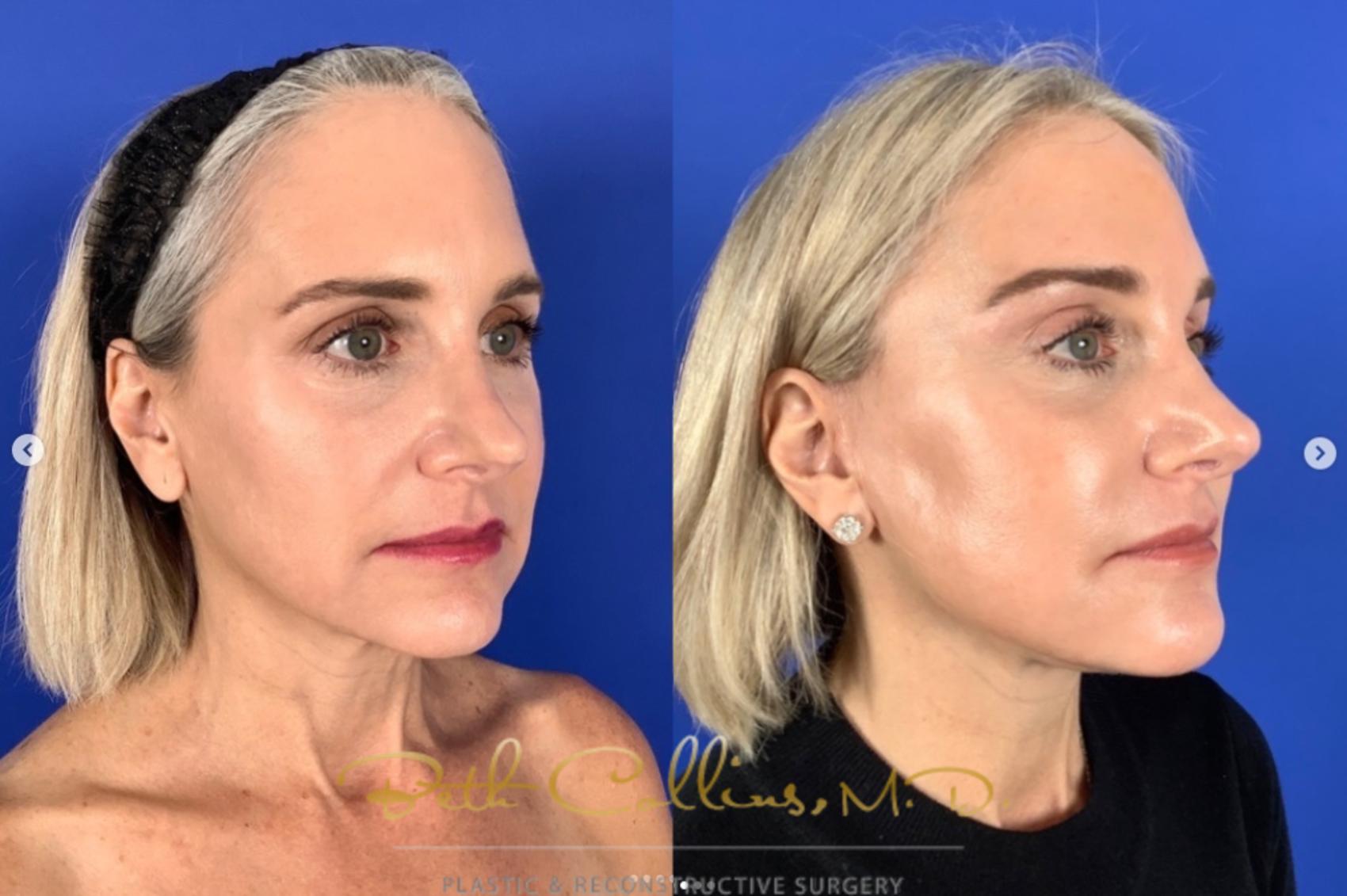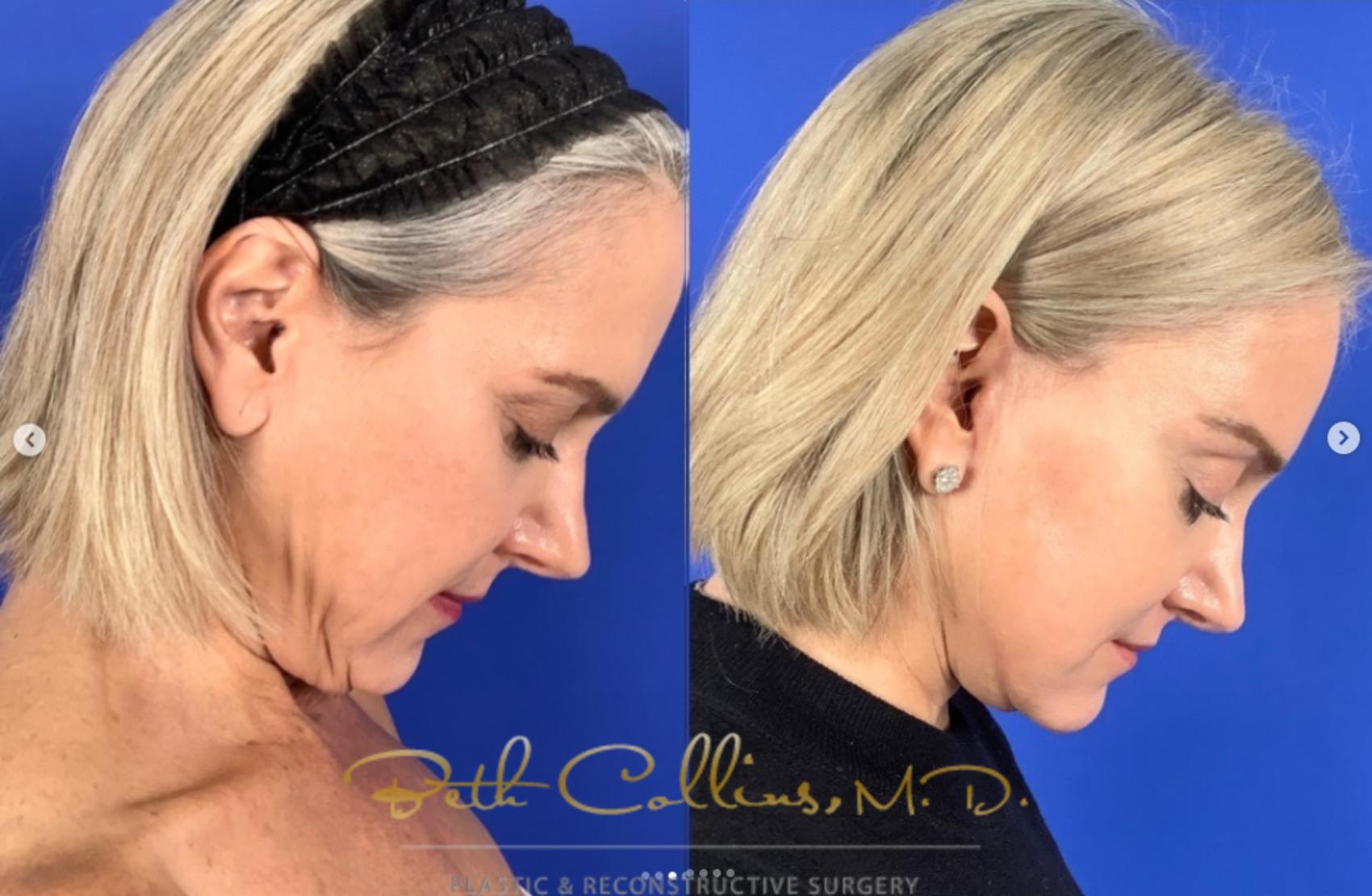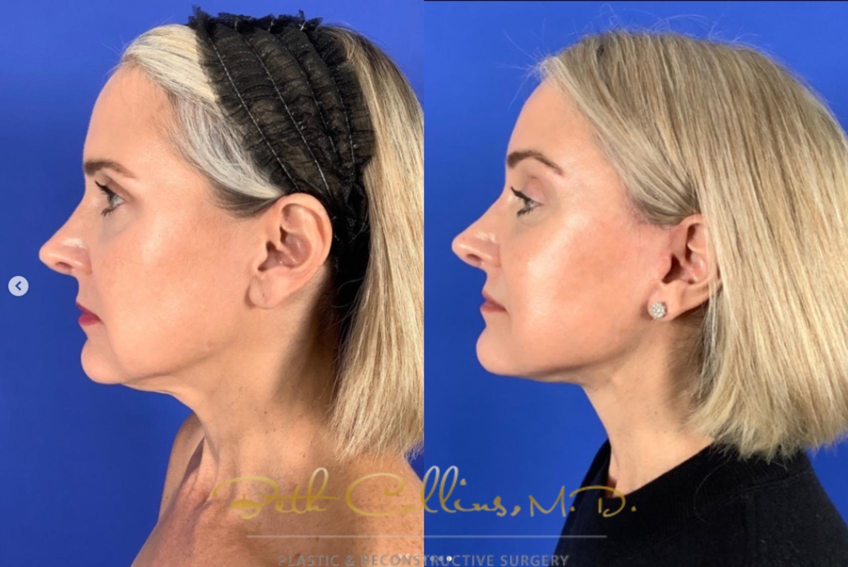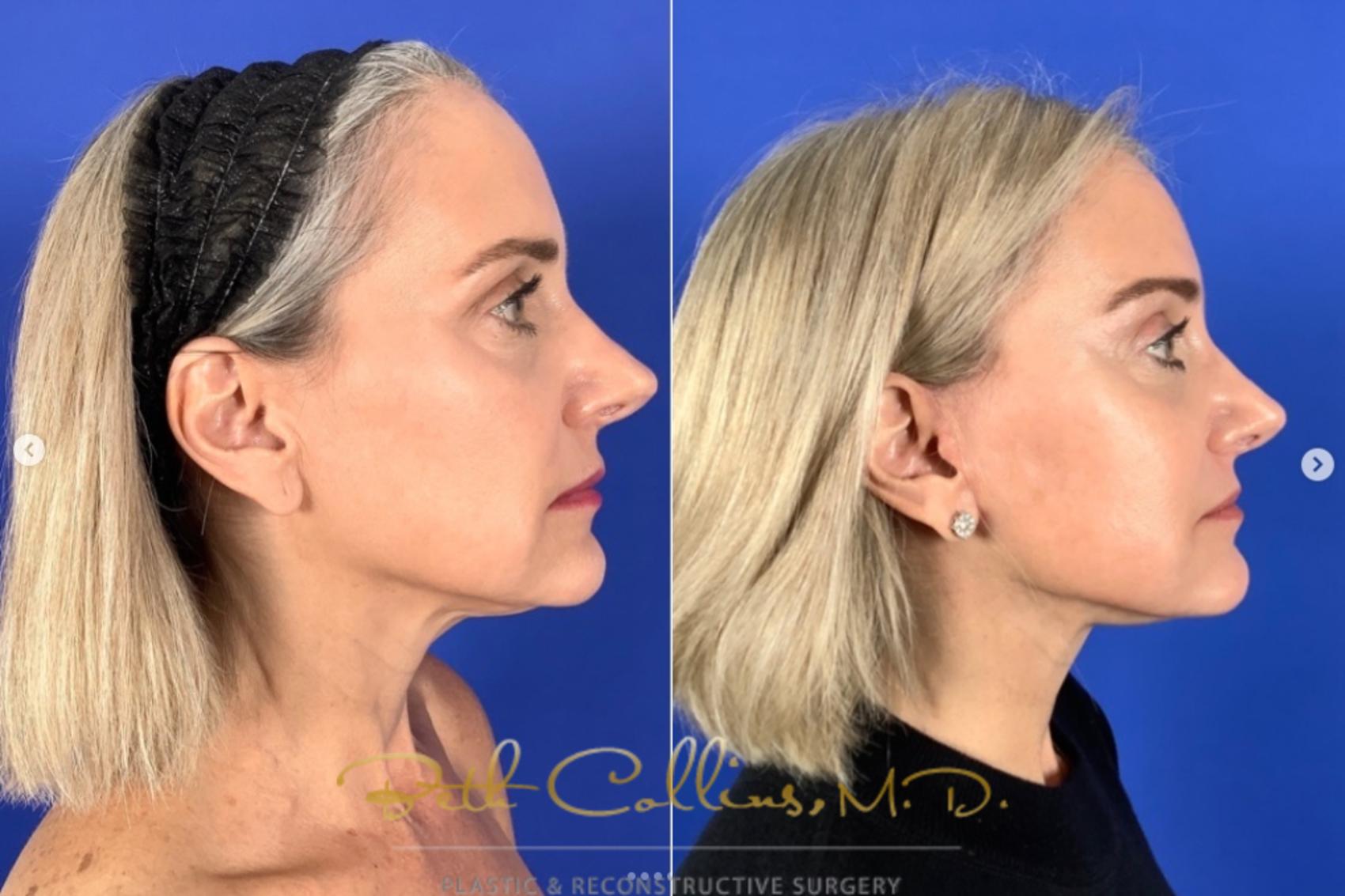Early intervention in facelift surgery. This beautiful lady had a brow lift and lower facelift and neck lift using the deep plane technique by Dr. Collins. She is three months into recovery and is already looking and feeling great. Her results are subtle and beautiful. Dr. Collins specializes in facelift surgery. She is recognized as a leader in the field of facial rejuvenation. She will be lecturing at the American Society of Plastic surgery in Austin, Texas on facelift surgery and non-surgical facial rejuvenation in October.