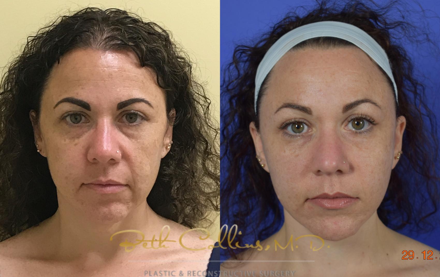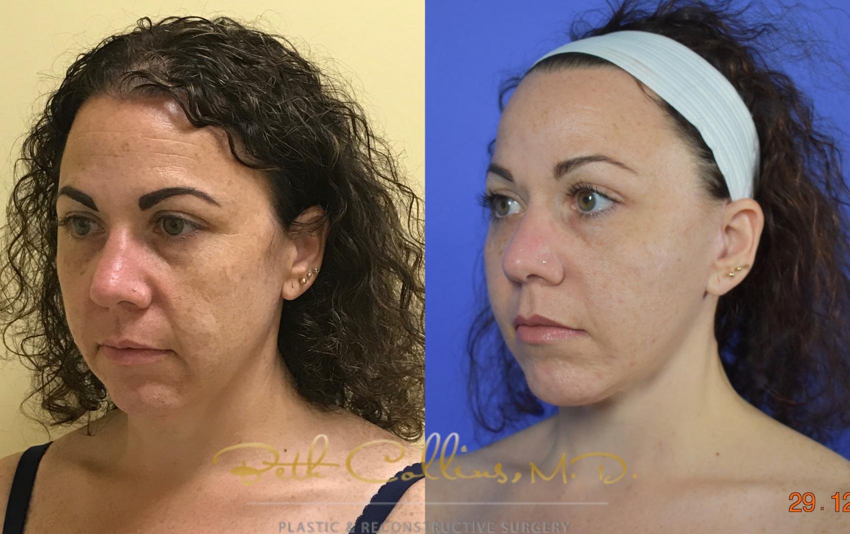 After her own hard work of diet and exercise, this young lady lost a significant amount of weight. This left her with some sagging in her skin and loss of volume in her face. Despite her young age, she underwent a lower face and neck lift with fat grafting to tighten up the skin that had loosened from her weightloss and restore the volume in her cheeks. Her result is natural and beautiful and she now enjoys looking in the mirror.