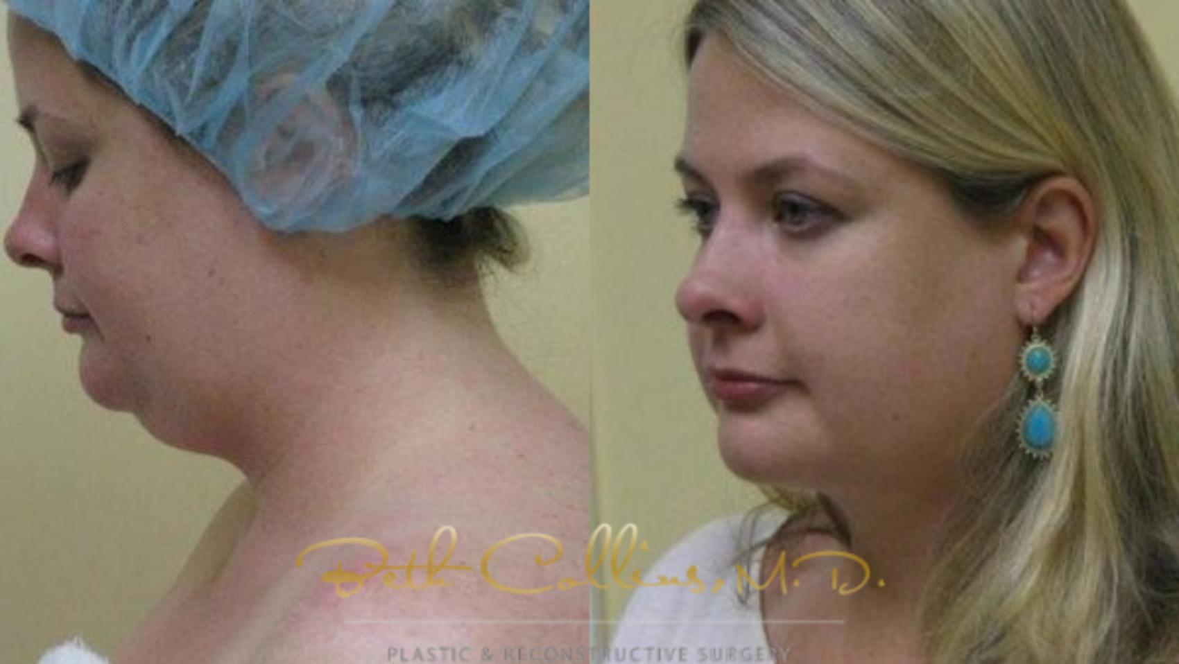 Liposuction of the neck has limited applications in the rejuvenation of the face. The procedure can address fat that is located in the subcutaneous plane in the neck and under the chin. The patient must also have great skin quality so that after the procedure, the skin will redrape and contract to the new contour. This patient was a perfect candidate since she fit all those criteria. This in office procedure took about one hour and the recovery was as simple as wearing a compression garment for one week. The results however are long lasting and significant.