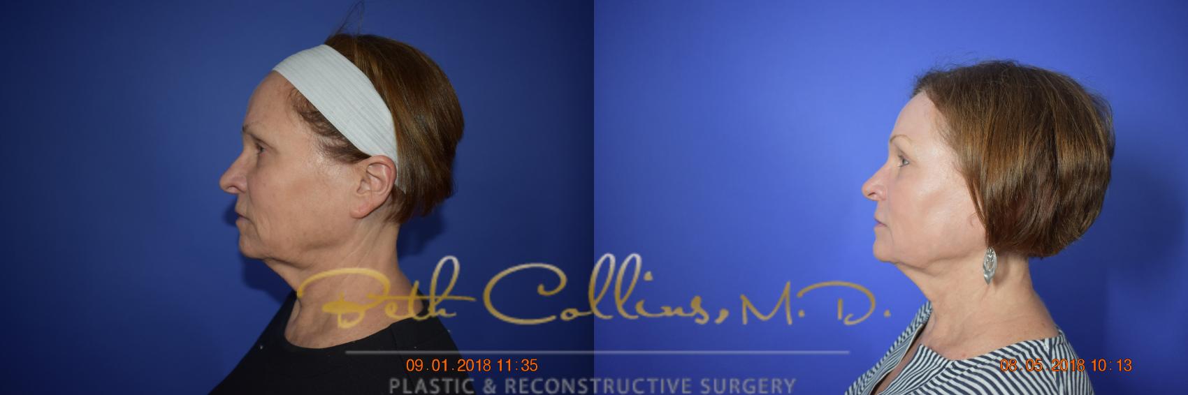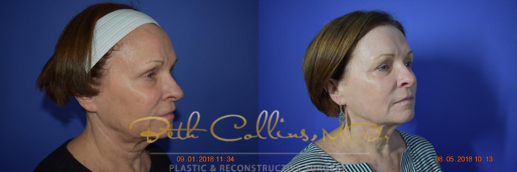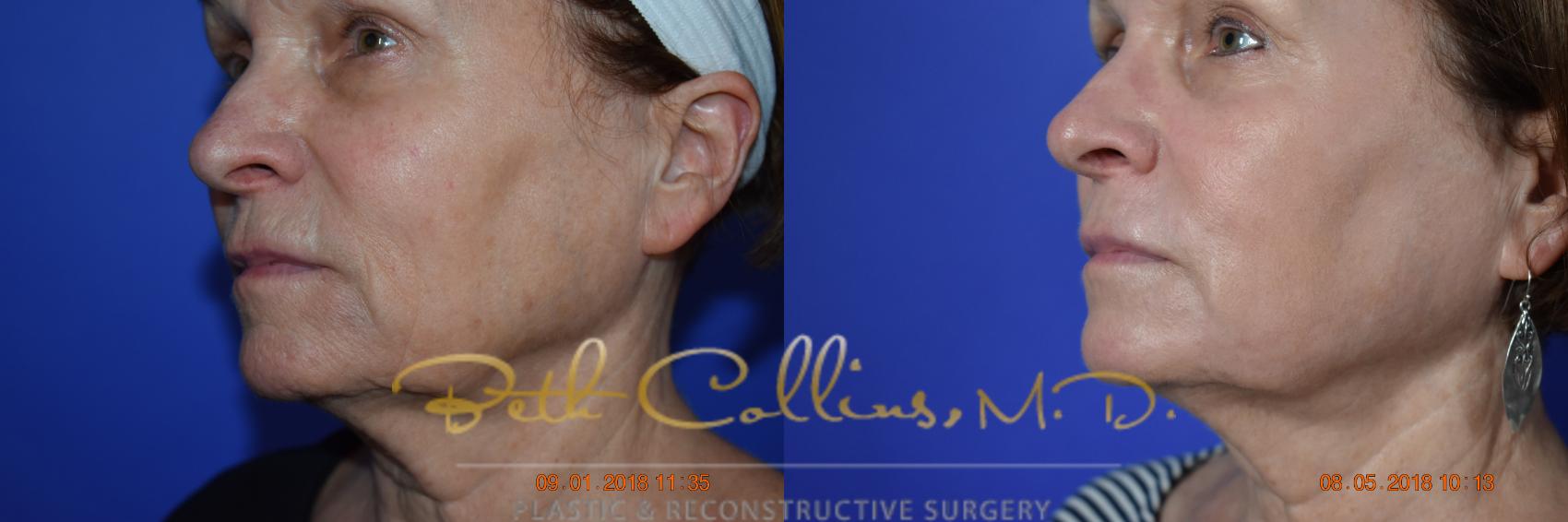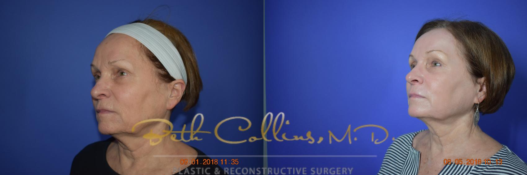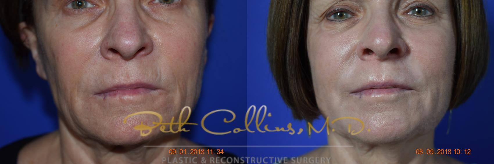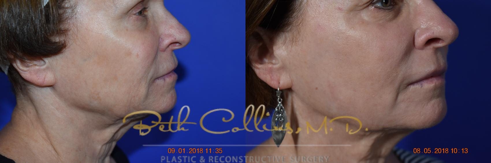 Laser resurfacing not only changes the tone and texture of the skin, but it icy not uncommon to see some tightening of the skin as well. Although you will not see the same degree of tightening that you would with a facelift, the minor improvement can at time be very noticeable as it was in the lovely patient.