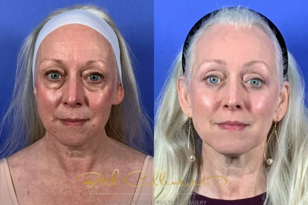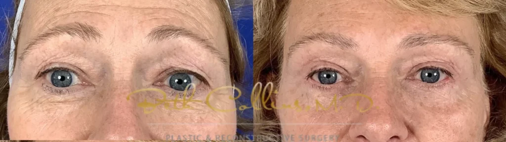 Most upper eyelid surgeries are performed under local anesthesia with sedation, though general anesthesia is an option for some patients. Upper lid blepharoplasty is often combined with other procedures. Dr. Collins will discuss the best approach for your specific situation during your consultation.